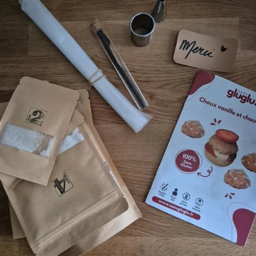 Chaque box Sansgluglu contient les ingrédients secs certifiés sans gluten et les accessoires de marque professionnelle.